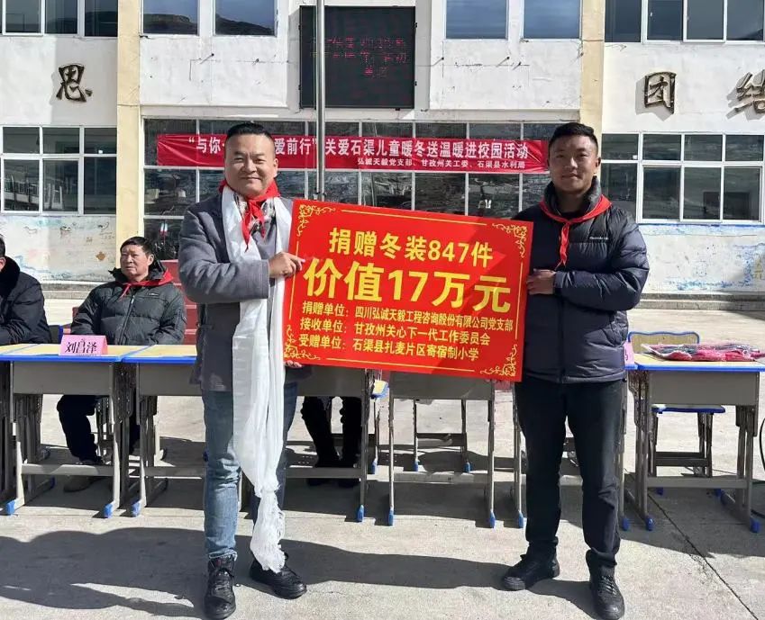 石渠縣,位于青藏高原東南緣的川、青、藏三省區(qū)結合處,冬季漫長、氣候嚴寒,為讓這里的孩子也能感受到秋冬的溫暖,甘孜州關工委、石渠縣水利局和四川弘誠天毅工程咨詢股份有限公司黨支部在2023年11月3日發(fā)起“與你一起,為愛前行”走進石渠縣關愛兒童公益活動,定向捐贈石渠縣扎麥片區(qū)寄宿制小學防寒服和校服847套,價值17萬元,希望能夠為孩子們提供更溫暖的學習環(huán)境。甘孜州關工委執(zhí)行主任劉昌澤、石渠縣人民政府副縣長土登澤仁、四川弘誠天毅工程咨詢股份有限公司負責人許軍等出席活動。