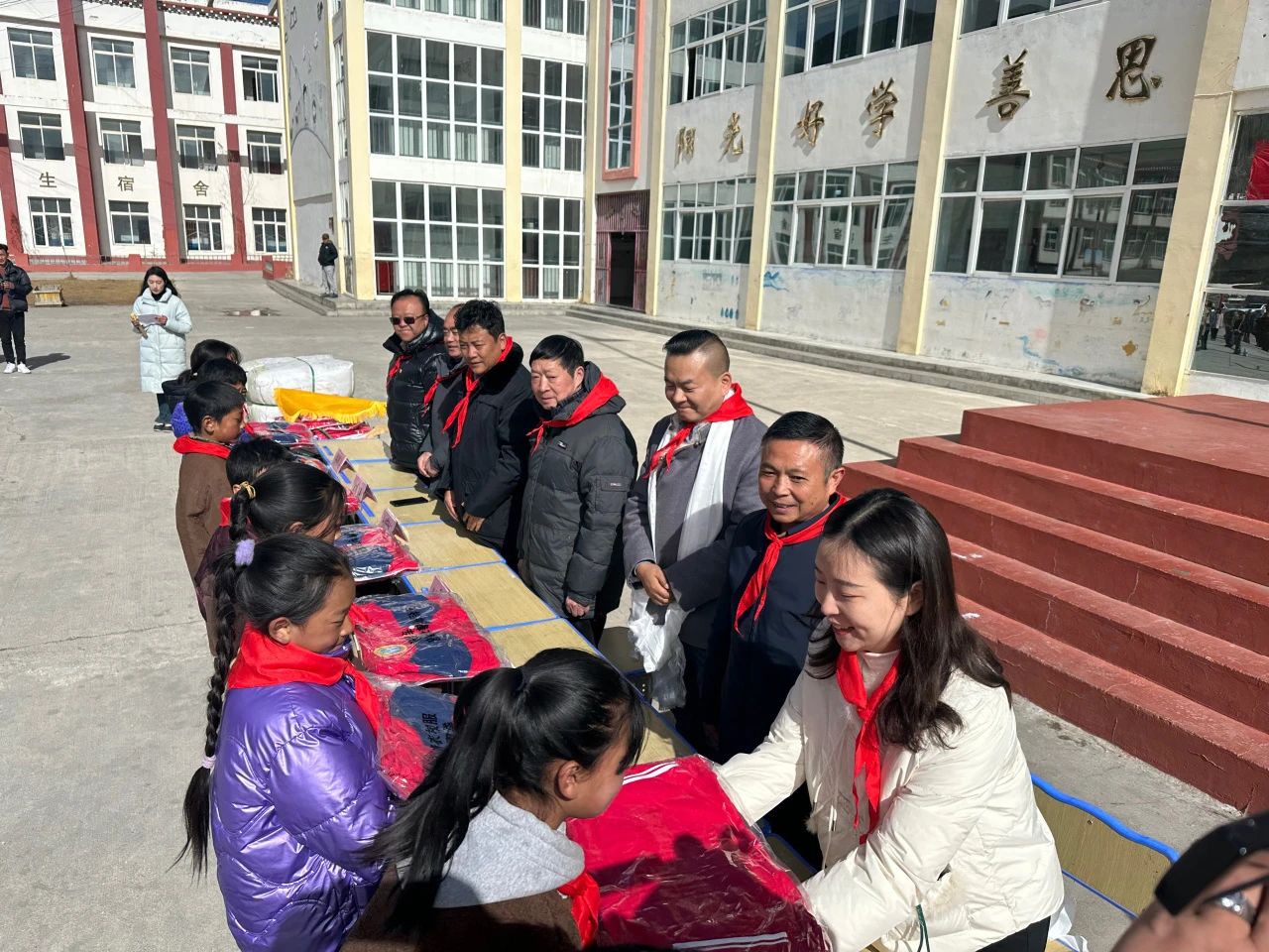 活動中,甘孜州關工委執(zhí)行主任劉昌澤、石渠縣人民政府副縣長土登澤仁紛紛表示,多年來,弘誠天毅黨支部堅持聽黨話、跟黨走,以“報效祖國、回報社會”為己任,認真履行社會責任,深耕社會公益慈善事業(yè)。此次捐贈活動給孩子們帶來的不僅是經(jīng)濟上、物質上的幫助,更主要的是精神上的鼓舞;不僅為學生帶來了新校服、新衣物,更是給學生們上了一堂愛心教育課。希望全體學生樹立崇高的理想,把個人的成長進步同祖國的繁榮昌盛緊緊聯(lián)系在一起,自尊自信、自立自強,懂得感恩,以堅韌不拔的毅力,在逆境中奮起,實現(xiàn)自己的人生目標,做有益于社會的人,鼓勵孩子們成才后把愛的正能量傳遞下去。