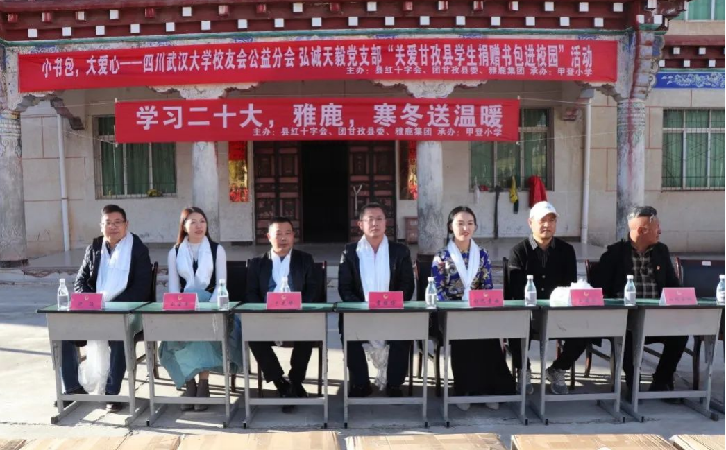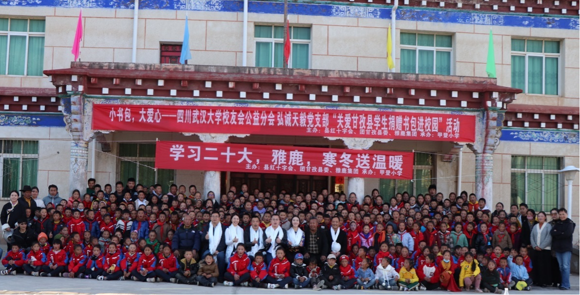 11月6日下午,四川武漢大學校友會公益分會、弘誠天毅黨支部“關愛甘孜縣學生捐贈書包進校園”活動走進四川省甘孜州甲登慈善學校,為全校249名孩子送上兒童書包,點亮孩子們的成長夢想。