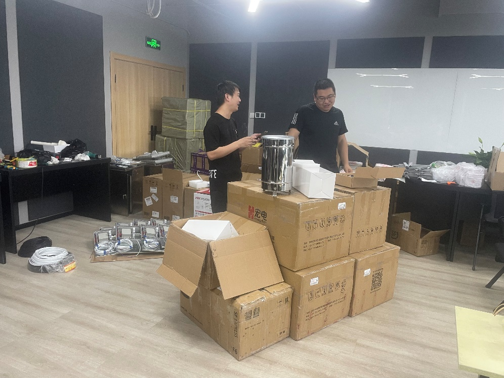 物聯網部的同事正在大汗淋漓的和業主驗收設備。