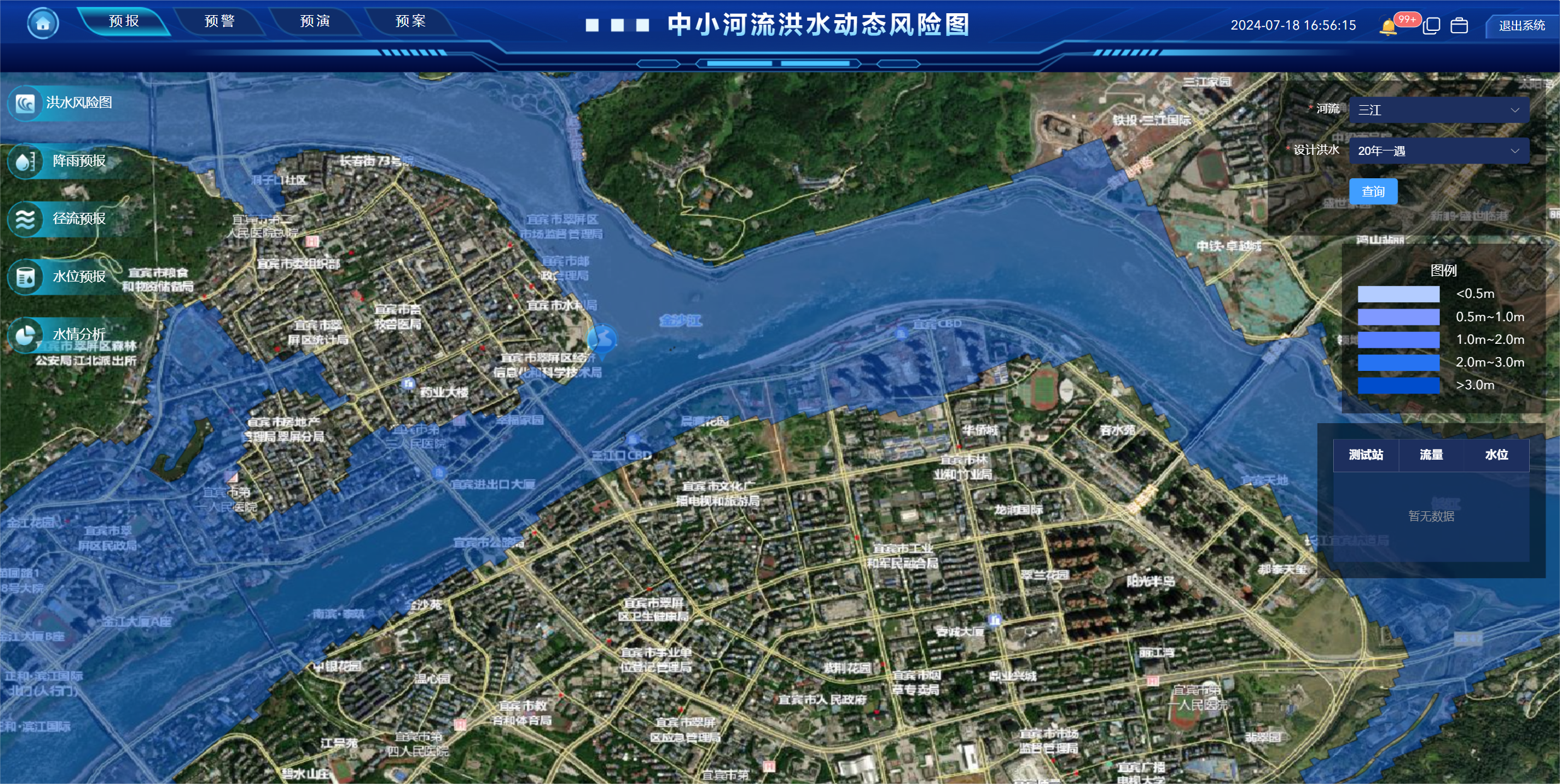 在宜賓的實(shí)踐中,該系統(tǒng)已彰顯多重價(jià)值:不僅實(shí)時(shí)洪水預(yù)報(bào),更在應(yīng)急處置中提供淹沒范圍圖,指導(dǎo)現(xiàn)場精準(zhǔn)撤離;同時(shí)通過淹沒風(fēng)險(xiǎn)分析,為宜賓水旱災(zāi)害防治區(qū)劃提供了科學(xué)支撐。