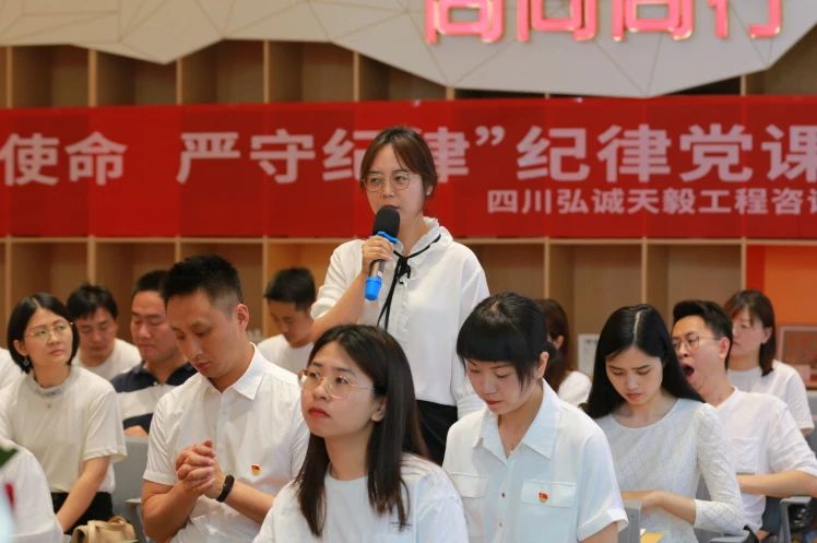 為認真學習貫徹中共中央《關于在全黨開展黨紀學習教育的通知》精神,全面深入推進黨紀學習教育,激勵黨員干部堅守紀律規矩,擔當砥礪前行,更好地發揮基層黨組織戰斗堡壘和黨員干部先鋒模范作用,6月22日,四川弘誠天毅工程咨詢股份有限公司黨支部書記許進同志以“強化使命,嚴守紀律”為題,為全體黨員上了一堂黨紀學習專題黨課。